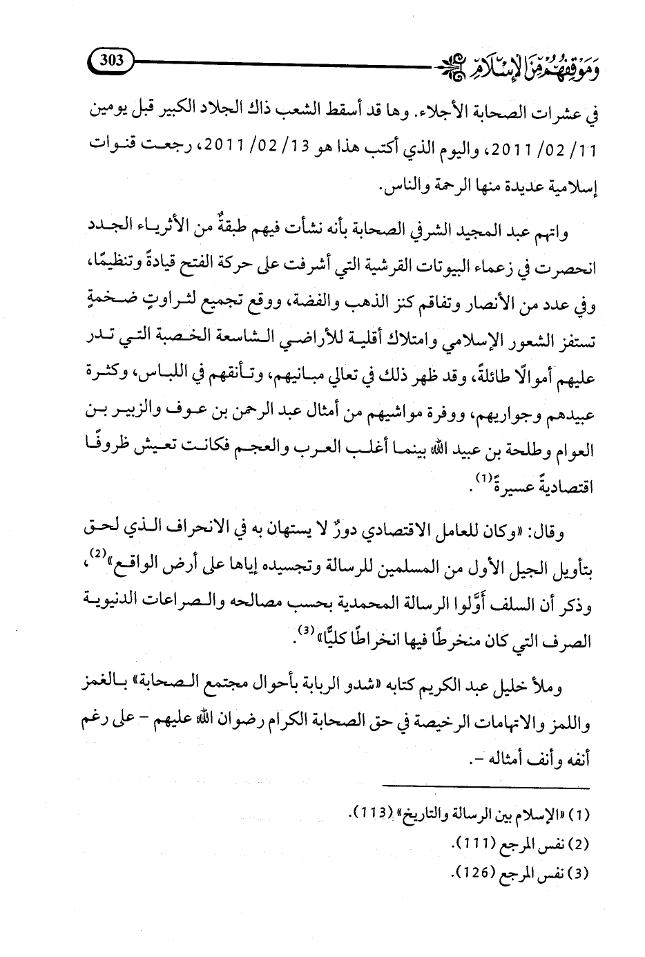 (¬1) الإسلام بين الرسالة والتاريخ (113).
