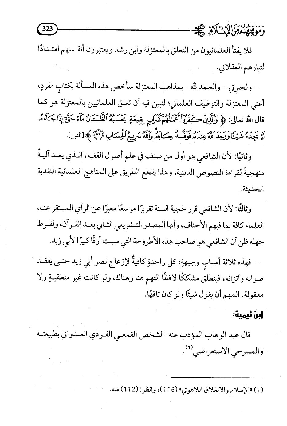 (¬1) الإسلام والانغلاق اللاهوتي (116)، وانظر (112) منه.