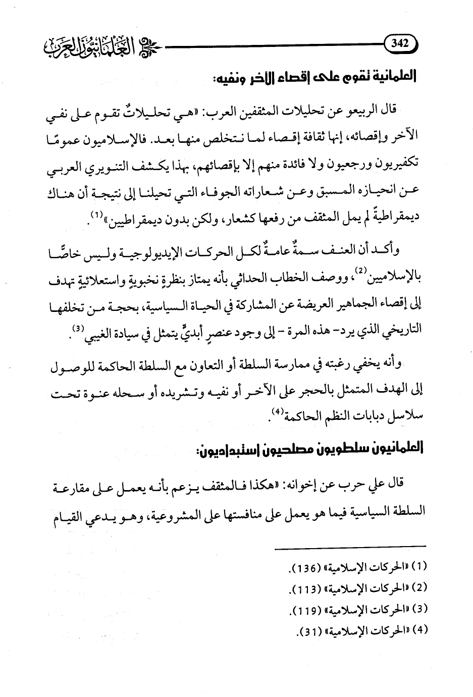 العلمانية تقوم على إقصاء الآخر ونفيه.