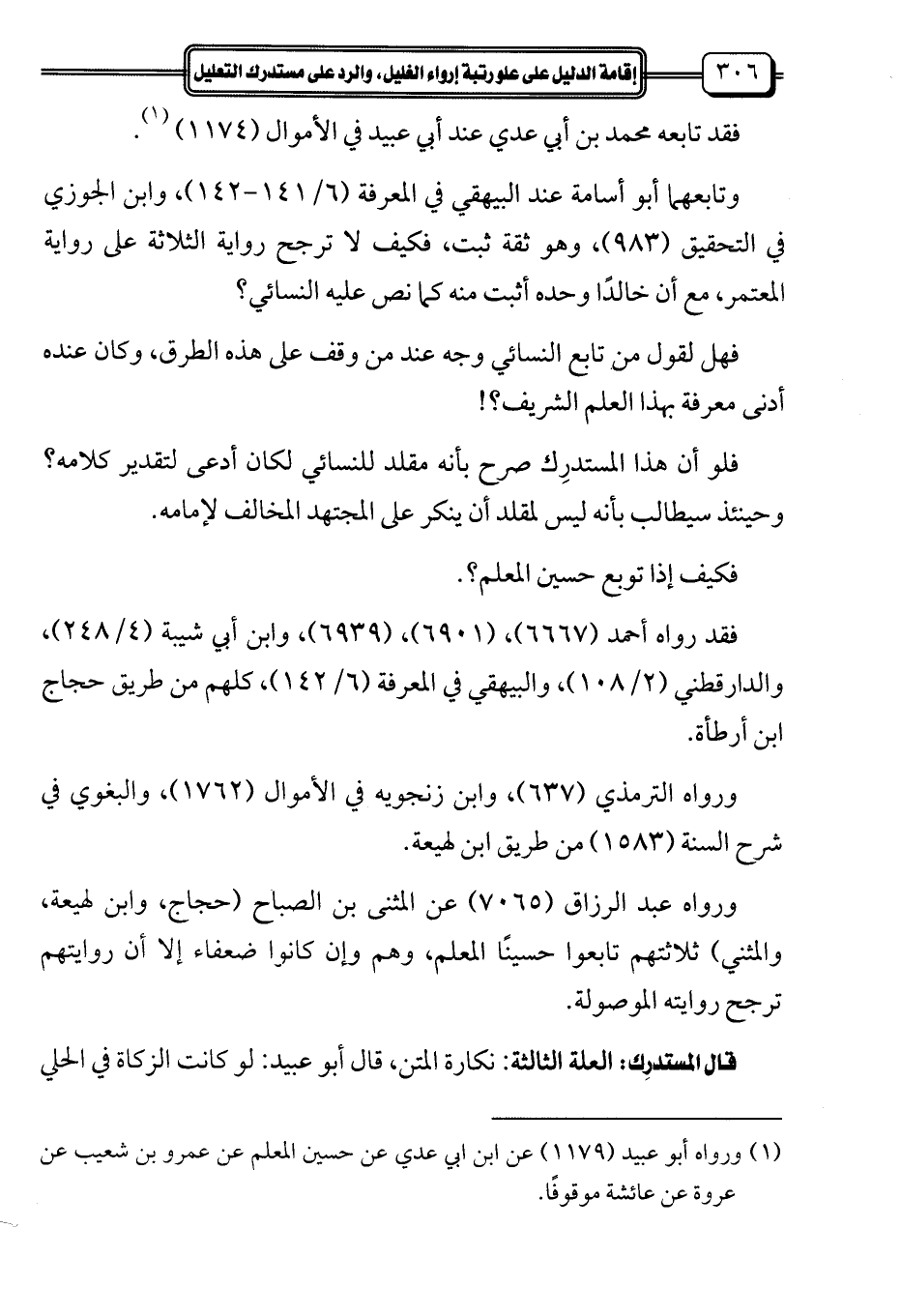 قال المستدرك: العلة الثالثة: نكارة المتن، قال أبو عبيد: لو كانت الزكاة في الحلي