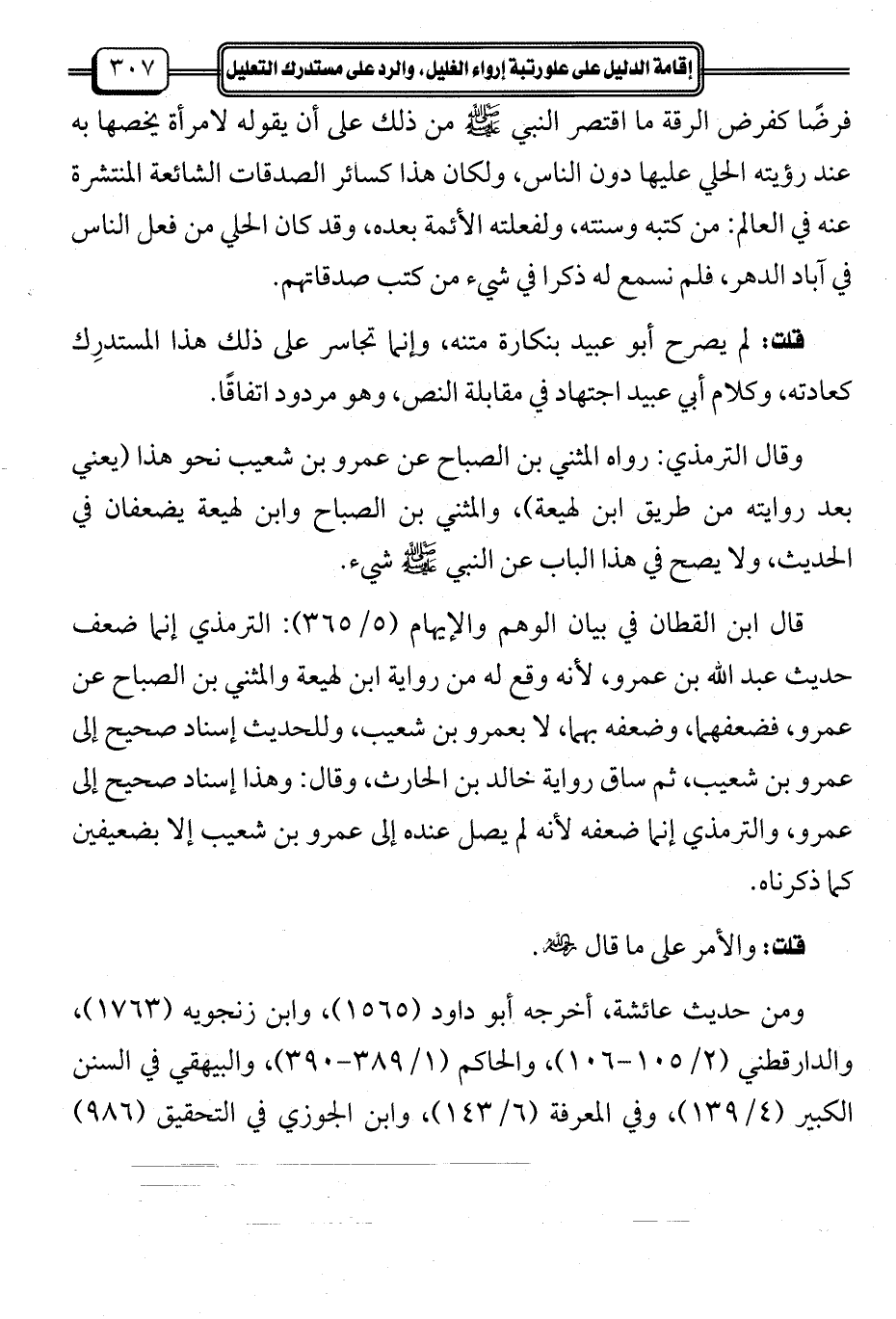 فرضًا كفرض الرقة ما اقتصر النبي - صلى الله عليه وسلم - من ذلك على أن يقوله لامرأة يخصها به عند رؤيته الحلي عليها دون الناس، ولكان هذا كسائر الصدقات الشائعة المنتشرة عنه في العالم: من كتبه وسنته، ولفعلته الأئمة بعده، وقد كان الحلي من فعل الناس في آباد الدهر، فلم نسمع له ذكرا في شيء من كتب صدقاتهم.