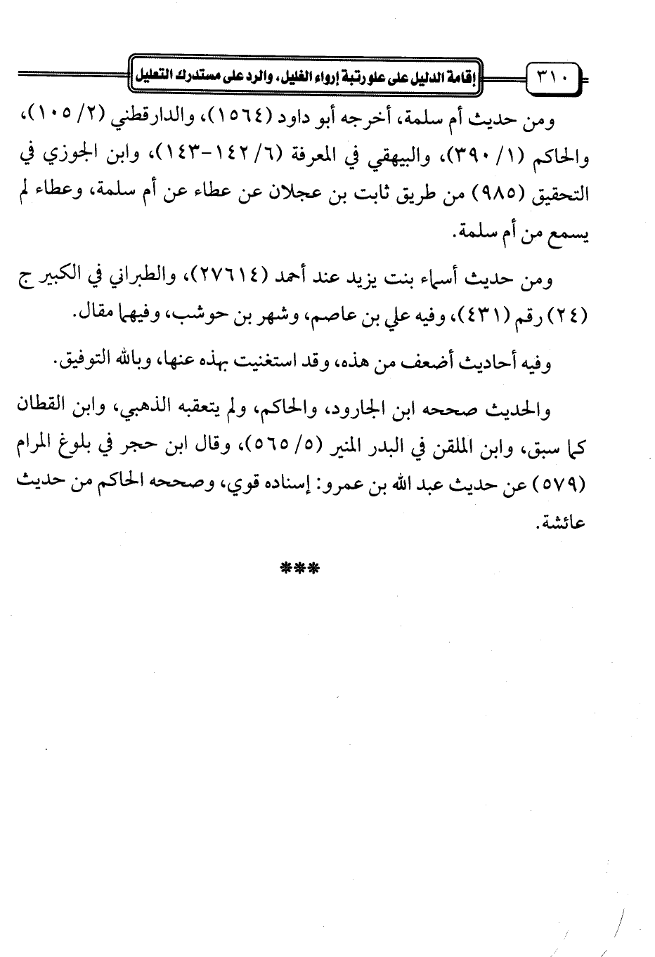 والحديث صححه ابن الجارود، والحاكم، ولم يتعقبه الذهبي، وابن القطان كما سبق، وابن الملقن في البدر المنير (5/ 565)، وقال ابن حجر في بلوغ المرام (579) عن حديث عبد الله بن عمرو: إسناده قوي، وصححه الحاكم من حديث عائشة.