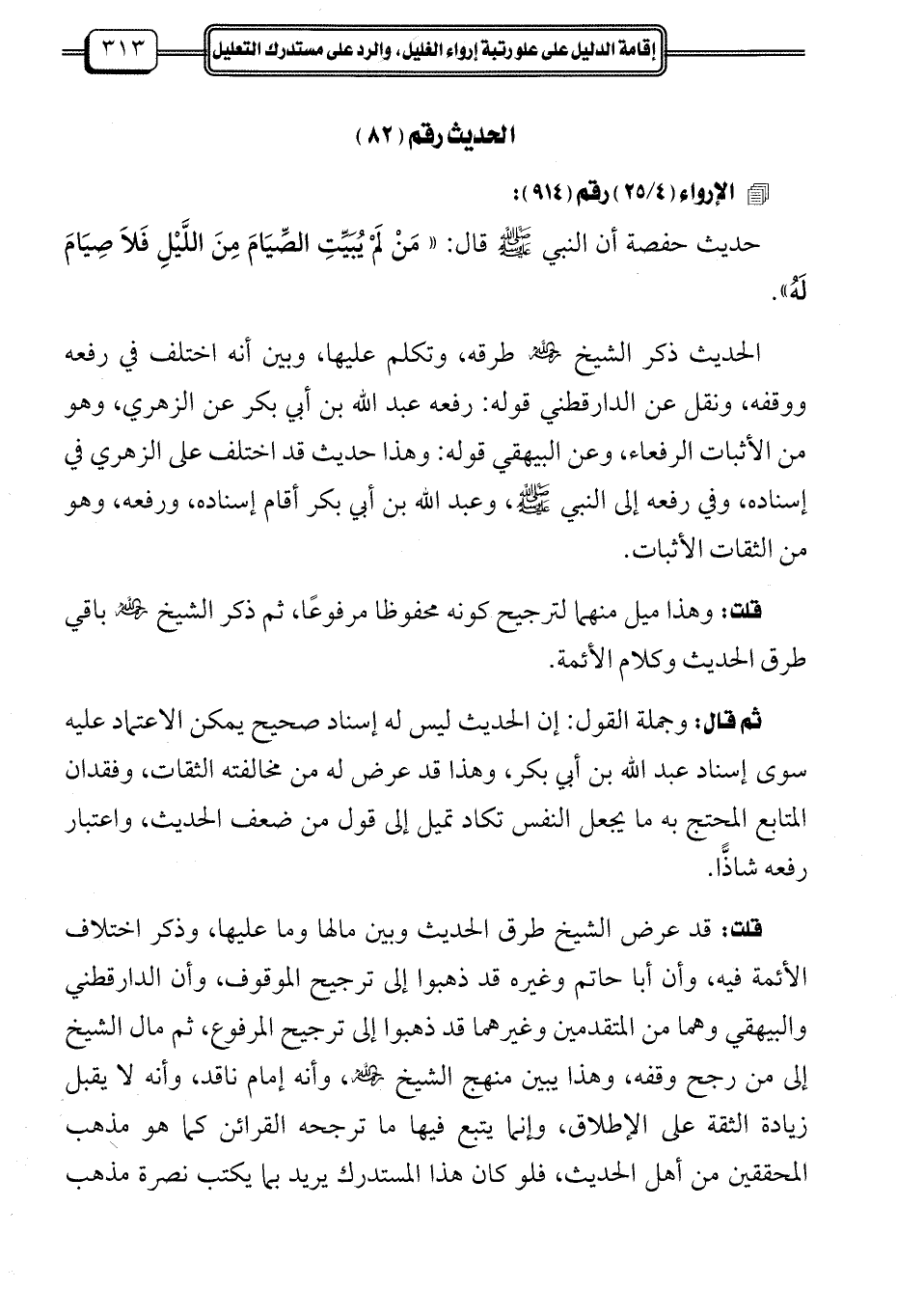 حديث حفصة أن النبي -صلى الله عليه وسلم - قال: "مَنْ لَمْ يُبَيِّتِ الصِّيَامَ مِنَ اللَّيْلِ فَلاَ صِيَامَ لَهُ".