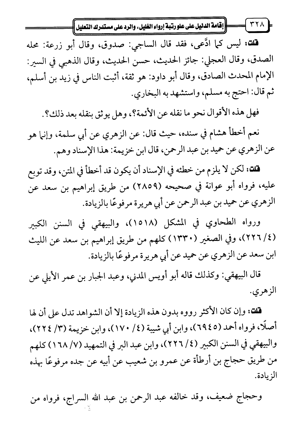 ورواه الطحاوي في المشكل (1518)، والبيهقي في السنن الكبير (4/ 226)، وفي الصغير (1330) كلهم من طريق إبراهيم بن سعد عن الليث ابن سعد عن الزهري عن حميد عن أبي هريرة مرفوعًا بالزيادة.