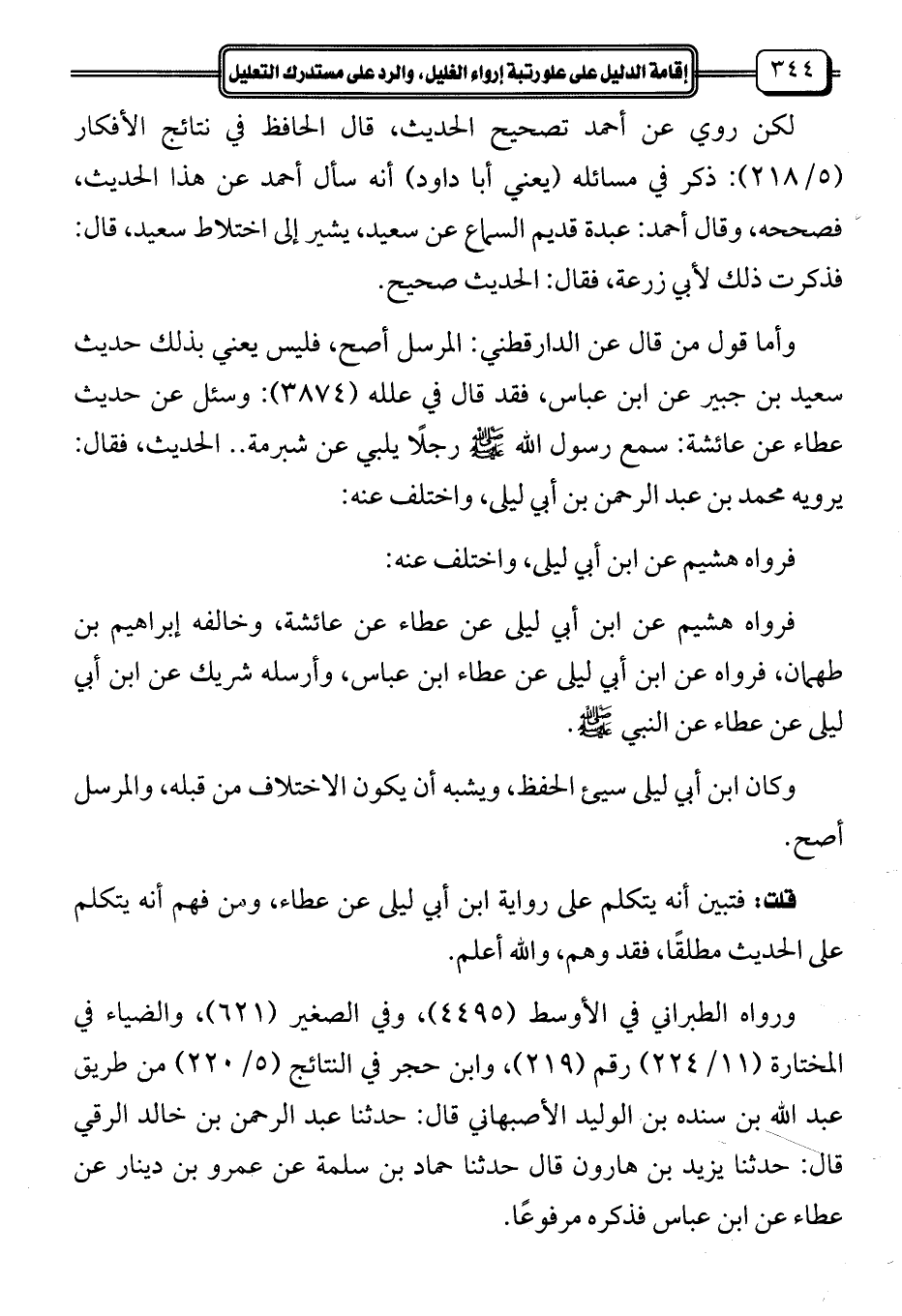 قلت: فتبين أنه يتكلم على رواية ابن أبي ليلى عن عطاء، ومن فهم أنه يتكلم على الحديث مطلقًا، فقد وهم، والله أعلم.