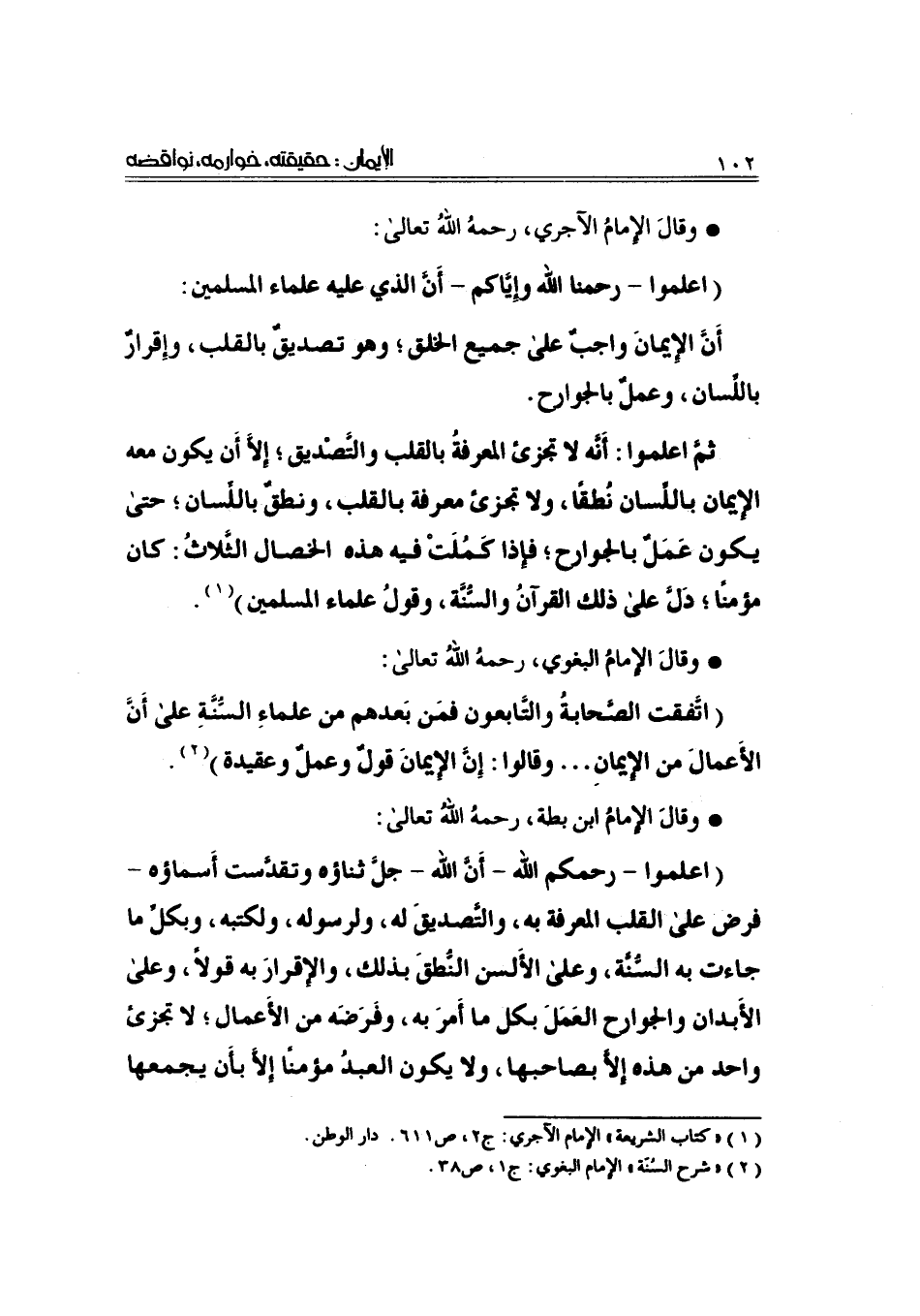 كتاب الإيمان حقيقته، خوارمه، نواقضه عند أهل السنة والجماعة