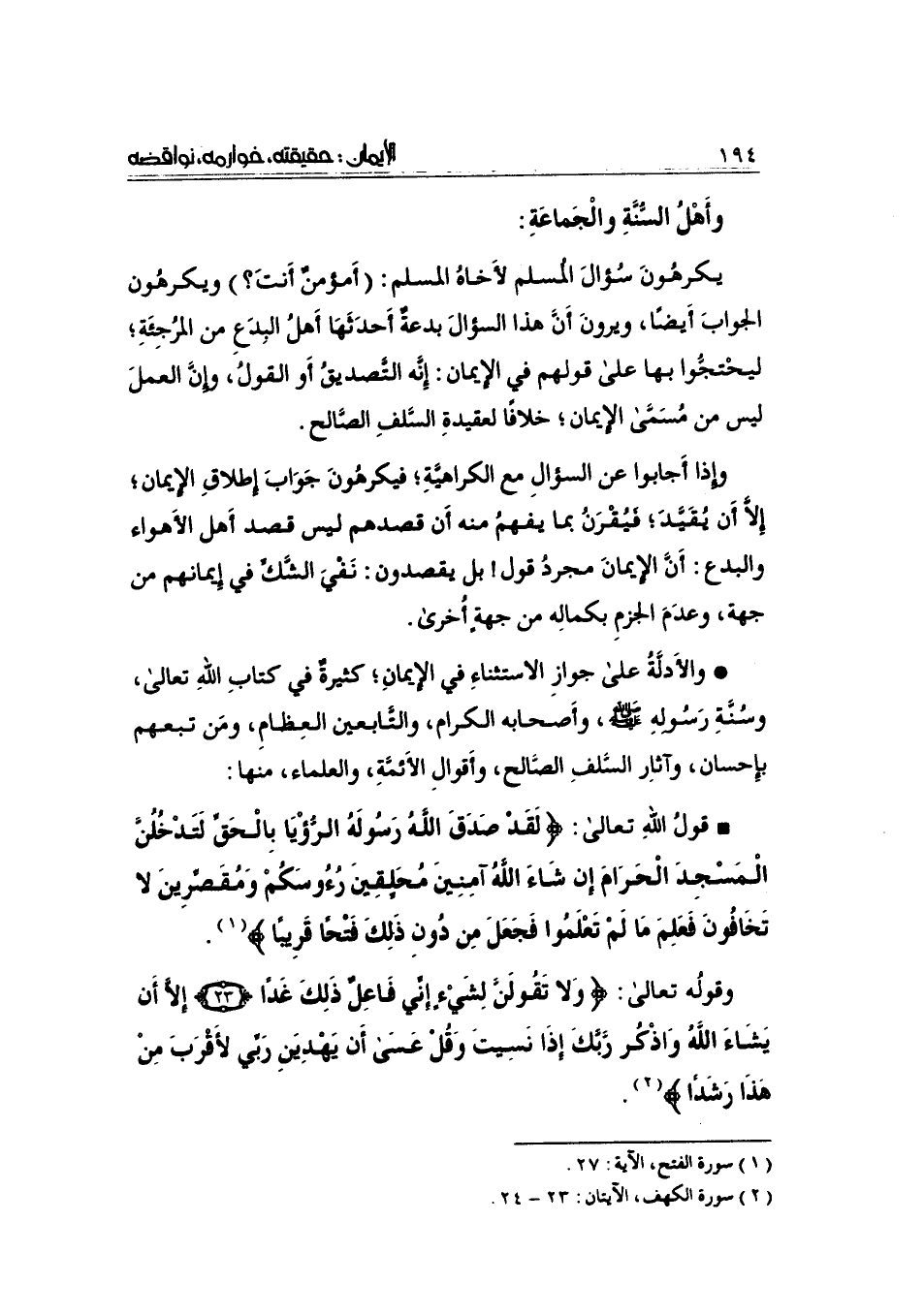 كتاب الإيمان حقيقته، خوارمه، نواقضه عند أهل السنة والجماعة