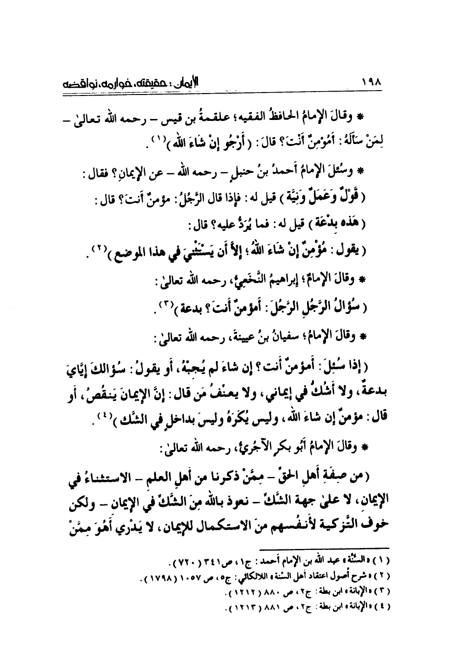 كتاب الإيمان حقيقته، خوارمه، نواقضه عند أهل السنة والجماعة