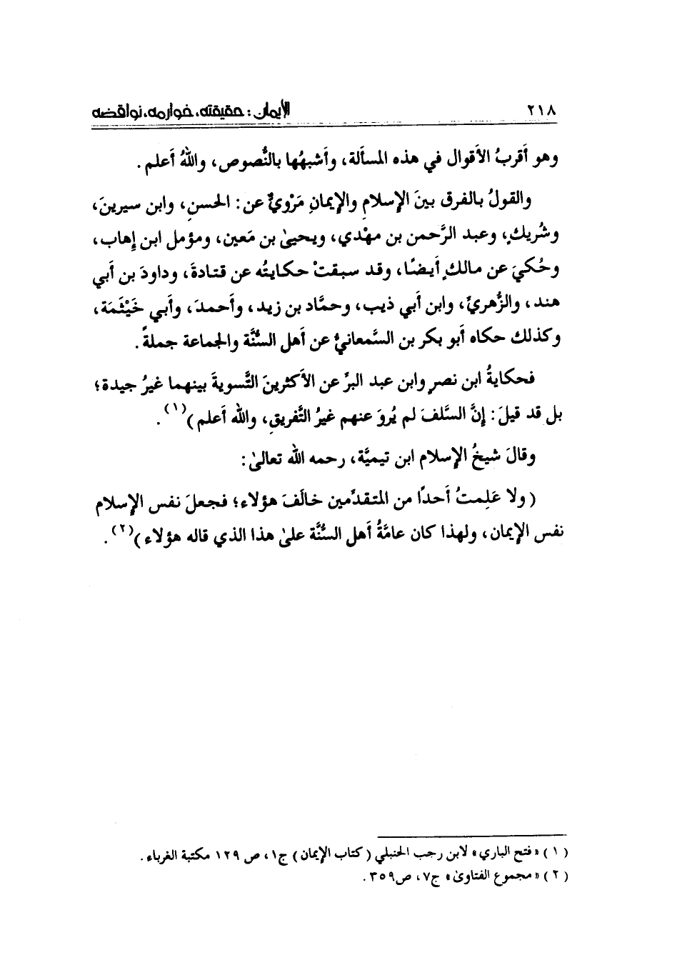 كتاب الإيمان حقيقته، خوارمه، نواقضه عند أهل السنة والجماعة