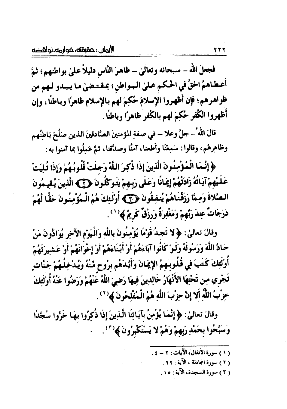 كتاب الإيمان حقيقته، خوارمه، نواقضه عند أهل السنة والجماعة