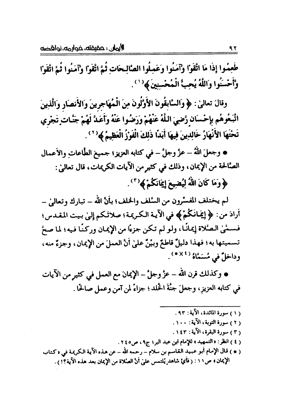 كتاب الإيمان حقيقته، خوارمه، نواقضه عند أهل السنة والجماعة