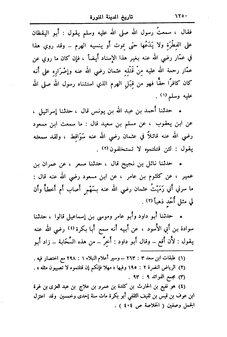 حَدَّثَنَا نَائِلُ بْنُ نَجِيحٍ، قَالَ: حَدَّثَنَا مِسْعَرٌ، عَنْ عِمْرَانَ بْنِ عُمَيْرٍ، عَنْ كُلْثُومِ بْنِ عَامِرٍ، عَنِ ابْنِ مَسْعُودٍ رَضِيَ اللَّهُ عَنْهُ قَالَ: «§مَا سَرَّنِي أَنِّي رَمَيْتُ عُثْمَانَ رَضِيَ اللَّهُ عَنْهُ بِسَهْمٍ أَصَابَ أَمْ أَخْطَأَ وَأَنَّ لِي مِثْلَ أُحُدٍ ذَهَبًا»