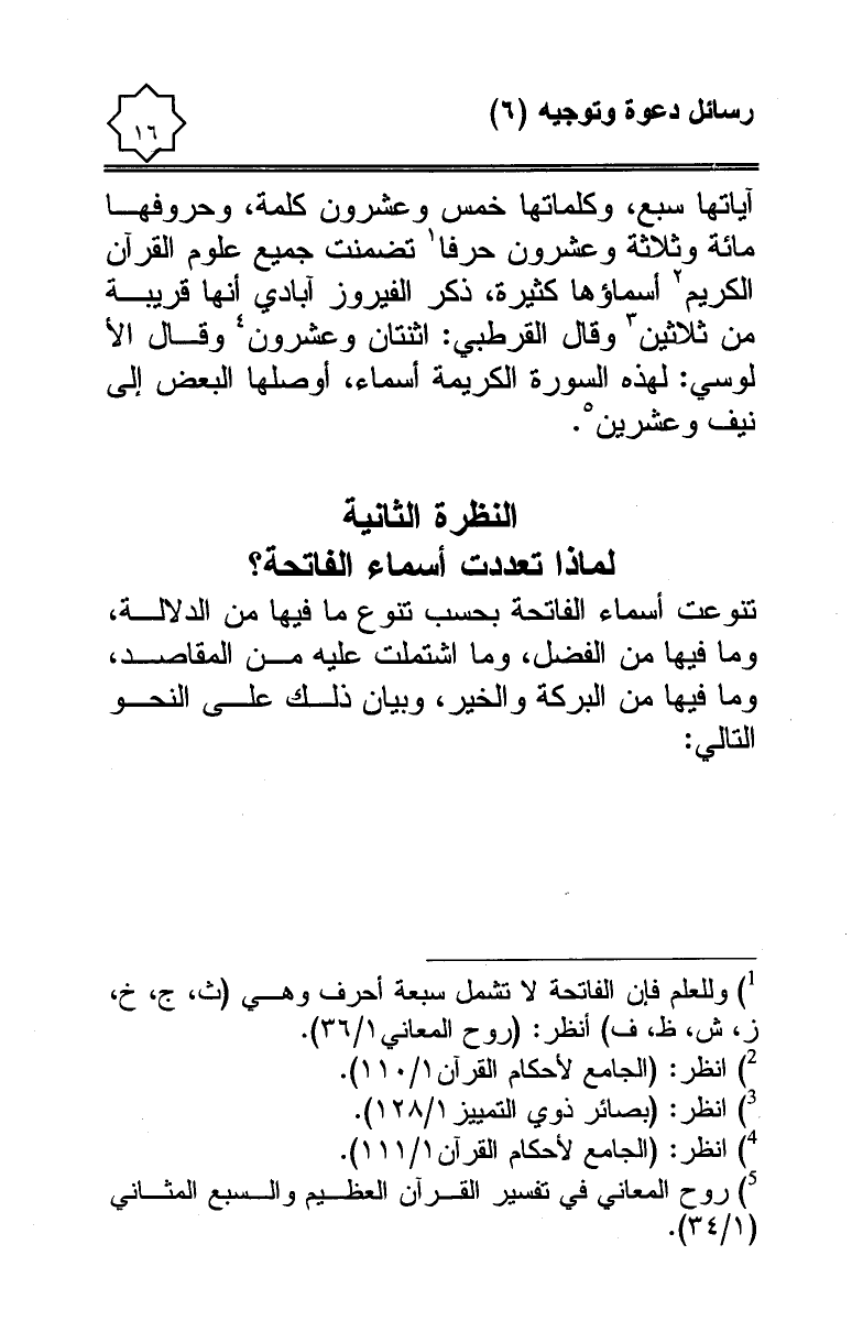 (¬1) وللعلم فإن الفاتحة لا تشمل سبعة أحرف وهي (ث، ج، خ، ز، ش، ظ، ف) انظر: (روح المعاني 1/ 36).