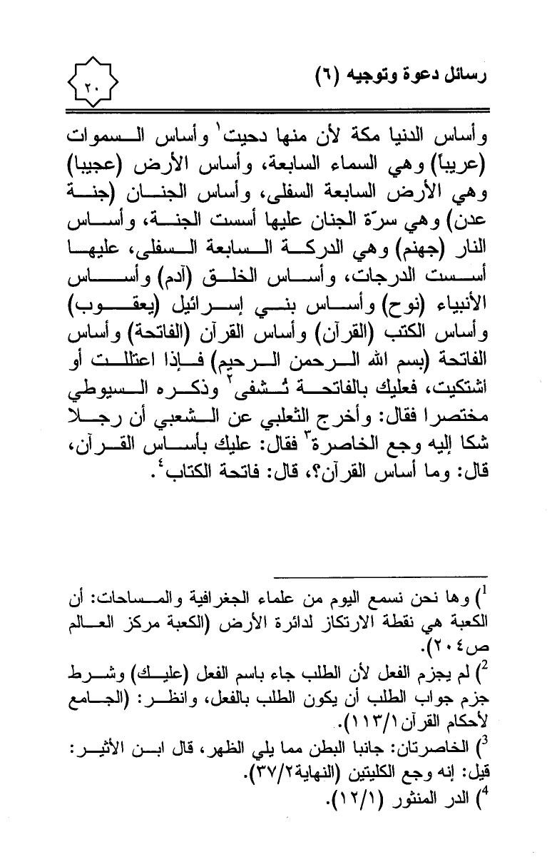 (¬1) وها نحن نسمع اليوم من علماء الجغرافية والمساحات: أن الكعبة هي نقطة الارتكاز لدائرة الأرض (الكعبة مركز العالم ص 204).