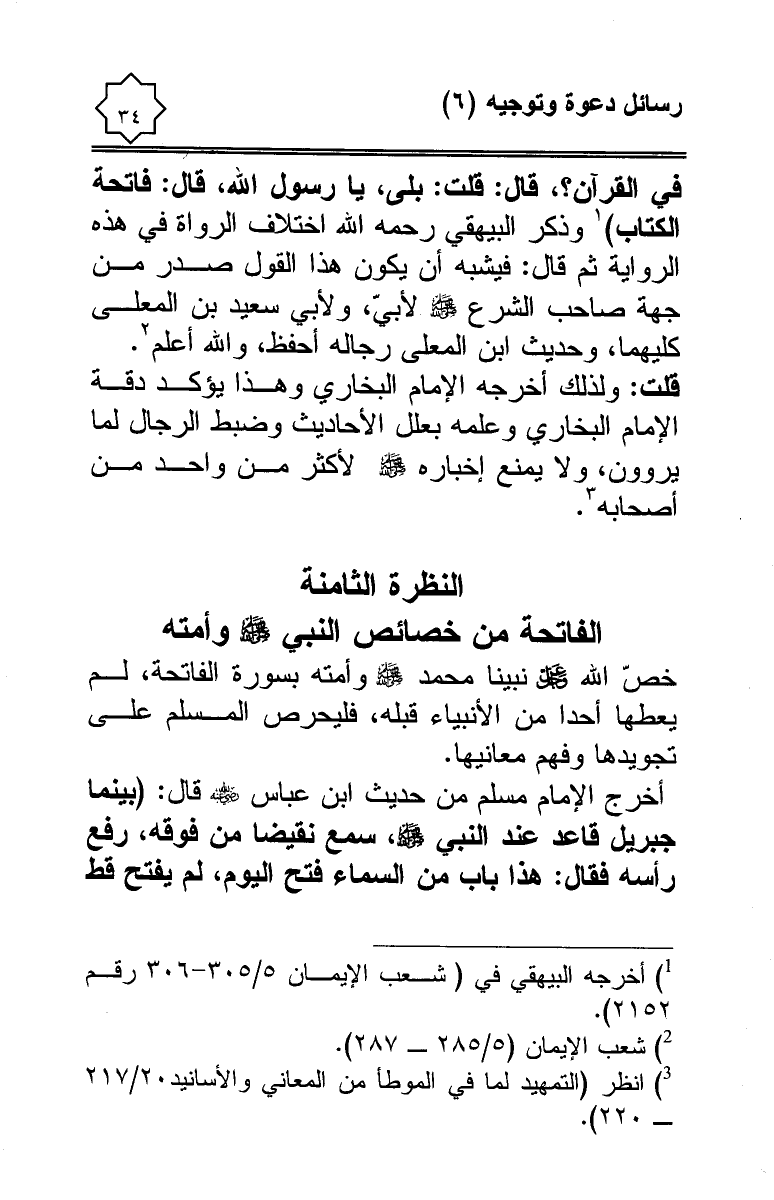 الفاتحة من خصائص النبي - صلى الله عليه وسلم - وأمته:
