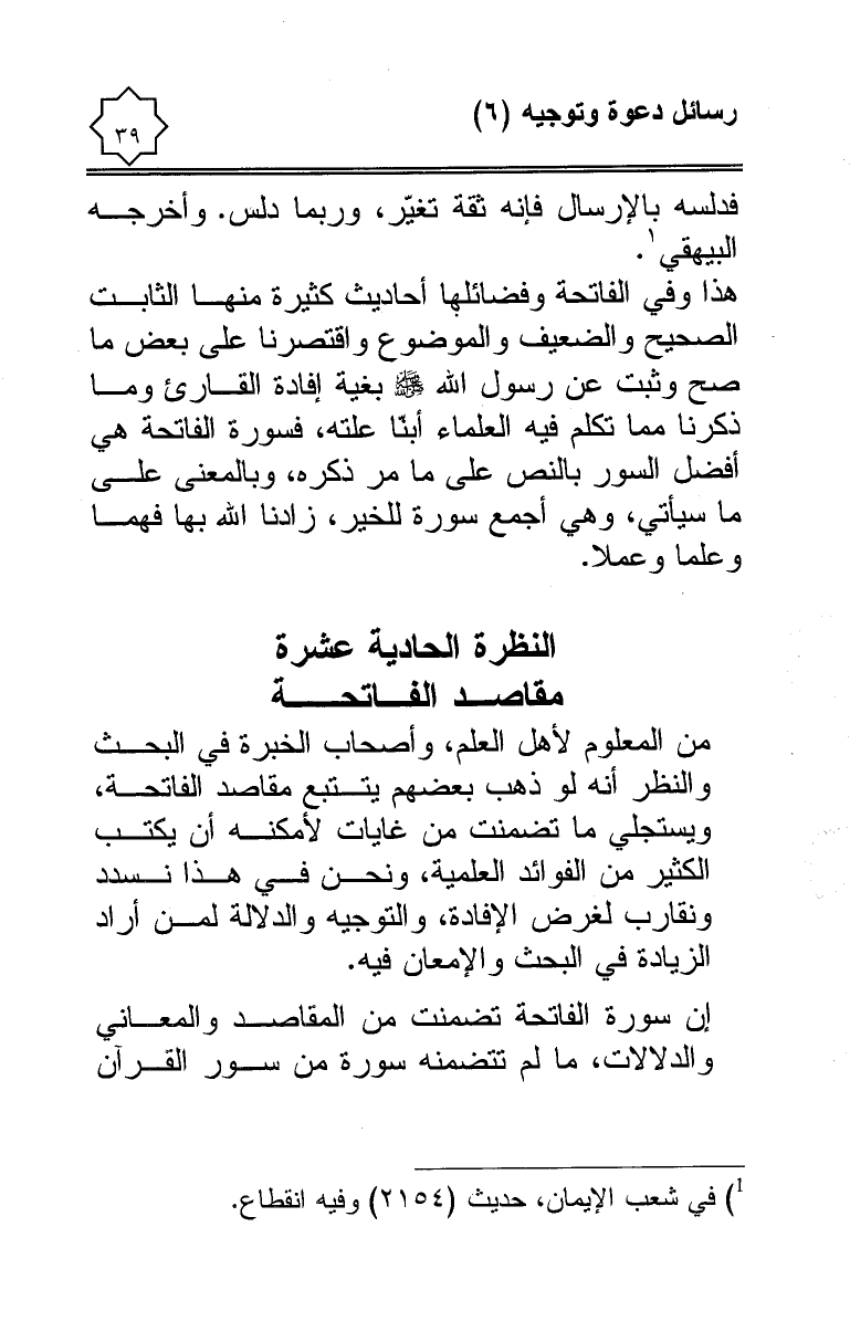 إن سورة الفاتحة تضمنت من المقاصد والمعاني والدلالات، ما لم تتضمنه سورة من سور القرآن