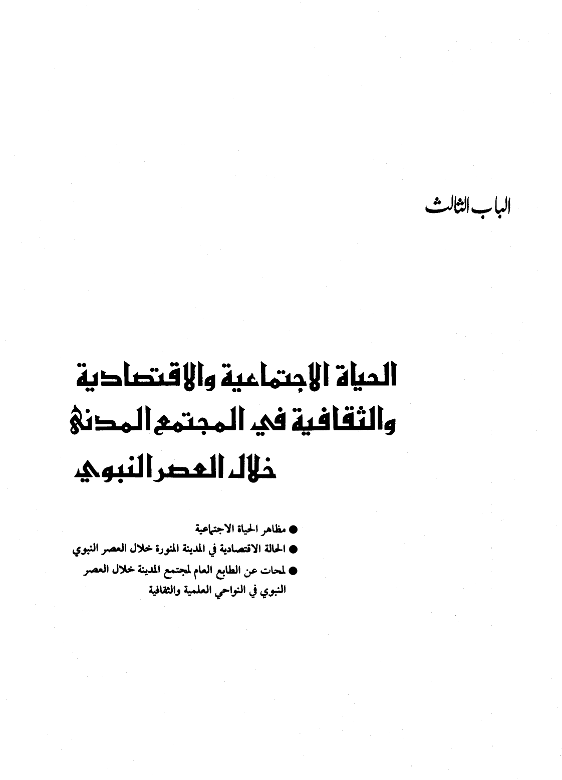 الباب الثالث الحياة الاجتماعية والاقتصادية والثقافية في المجتمع المدني خلال العصر النبوي