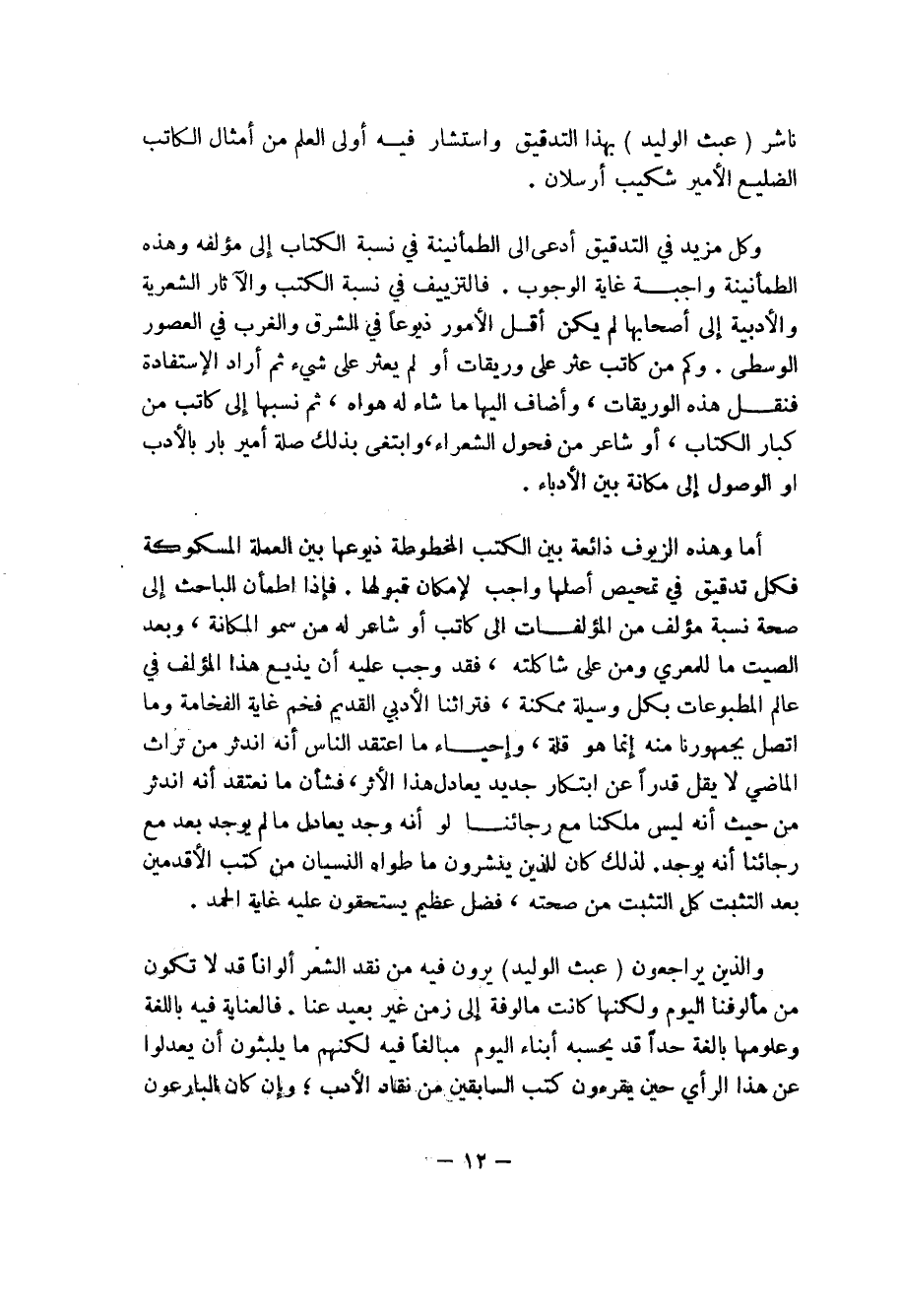 ناشر (عبث الوليد) بهذا التدقيق واستشار فيه أولى العلم من أمثال الكاتب الضليع الأمير شكيب أرسلان.
