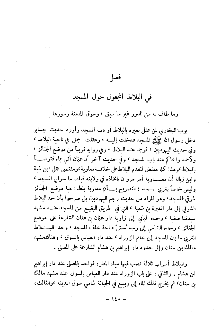 فصل في البلاط المجعول حول المسجد وما طاف به من الدور غير ما سبق، وسوق المدينة وسورها