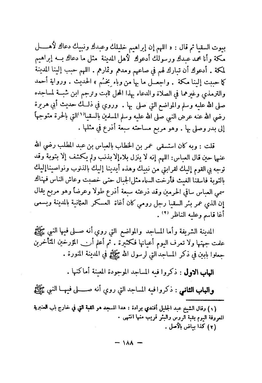 والباب الثاني: ذكروا فيه المساجد التي روي أنه صلى فيها النبي صلى الله عليه وسلم ...
