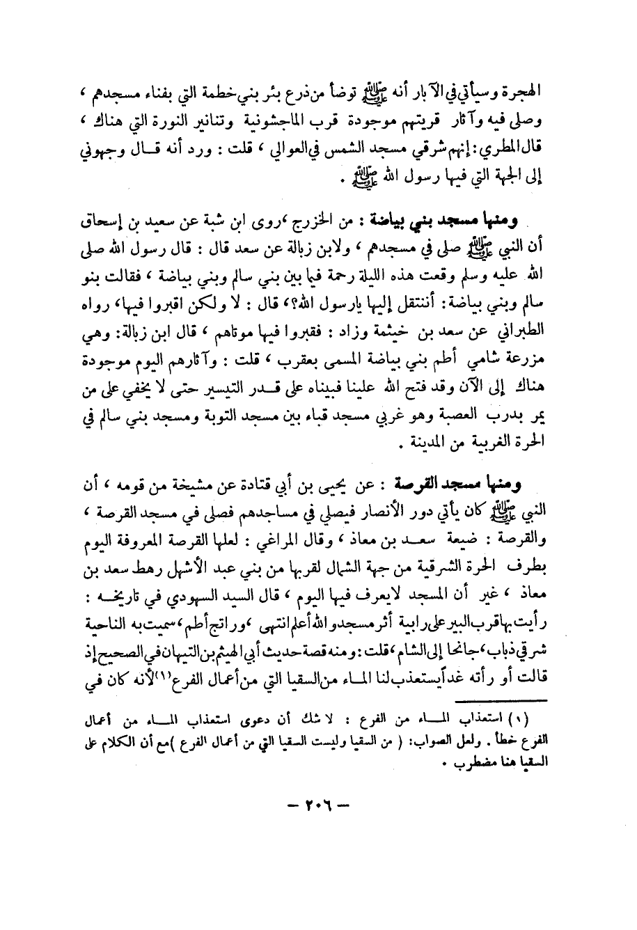 (1) استعذاب الماء من الفرع: لا شك أن دعوى استعذاب الماء من أعمال الفرع خطأ. ولعل الصواب: (من السقيا وليست السقيا التي من أعمال الفرع) مع أن الكلام على السقيا هنا مضطرب.