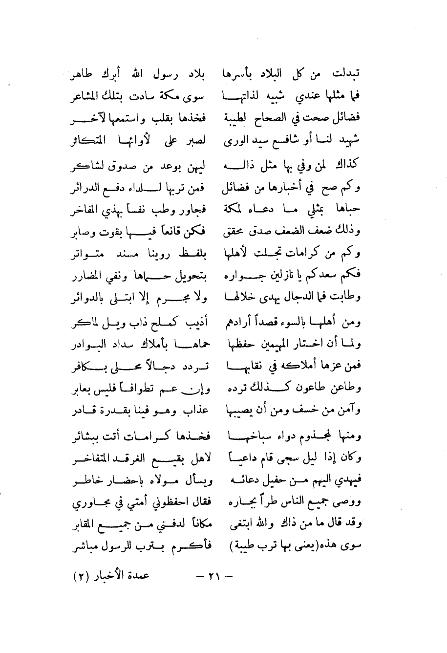 وكم صح في أخبارها من فضائل فمن تربها للداء رفع الدرائر