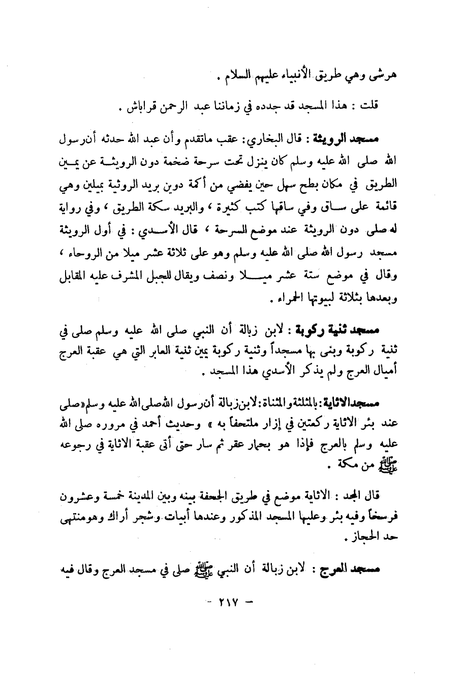 مسجد العرج: لابن زبالة أن النبي صلى الله عليه وسلم صلى في مسجد العرج وقال فيه