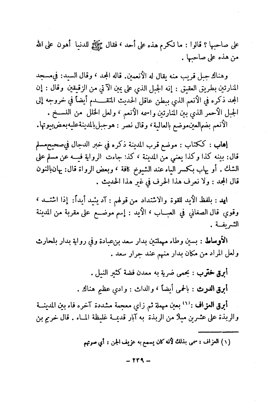 أبرق المزاف: (1) بعين مهملة ثم زاي معجمة مشددة آخره فاء بين المدينة والربذة على عشرين ميلاً من الربذة به آبار قديمة غليظة الماء. قال خريم بن ...