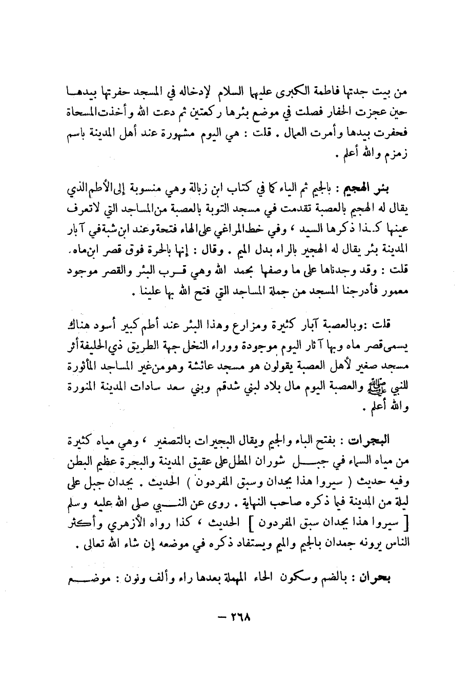 قلت: هي اليوم مشهورة عند أهل المدينة باسم زمزم والله أعلم.