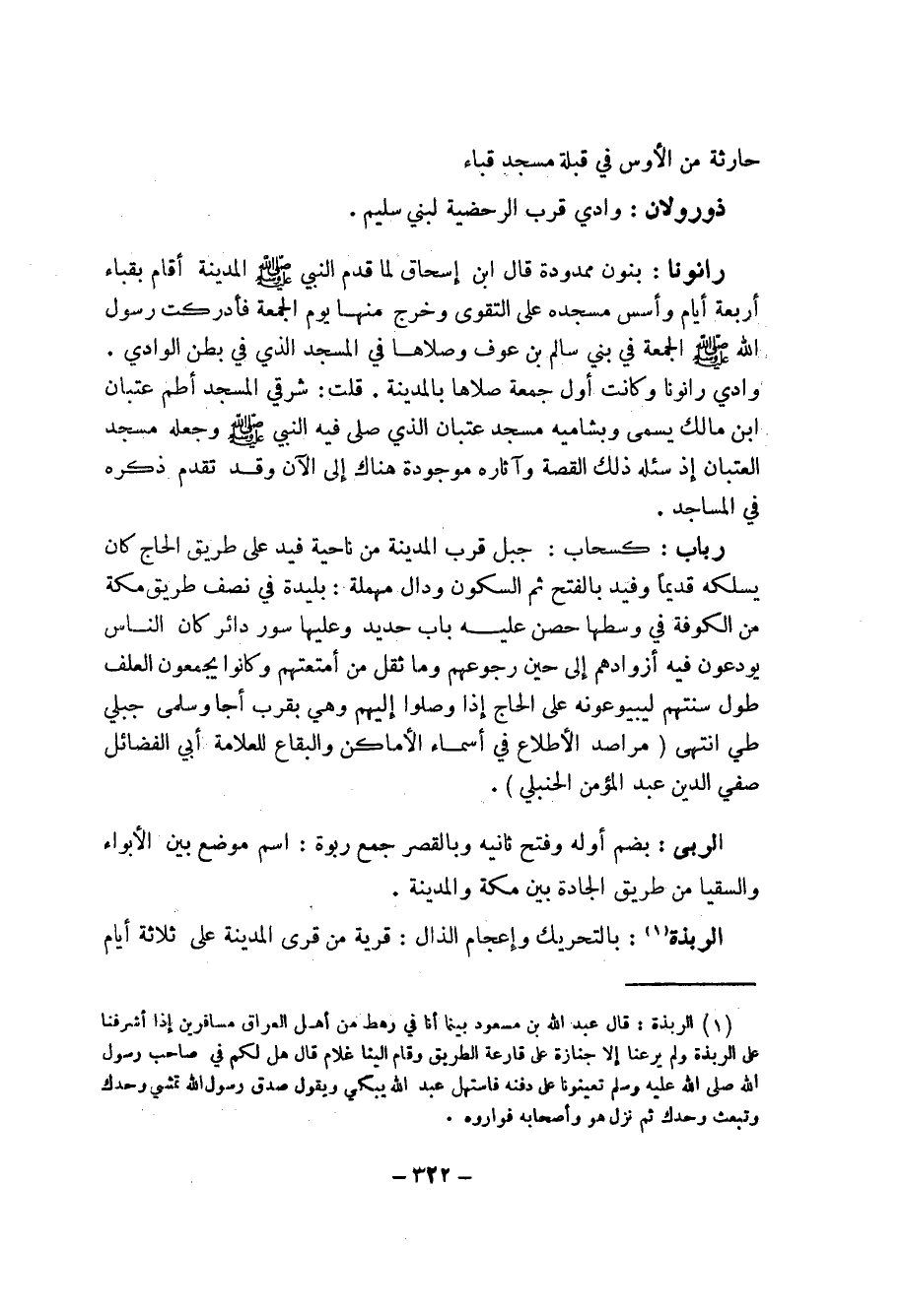 322 ... حارثة من الأوس في قبلة مسجد قباء.