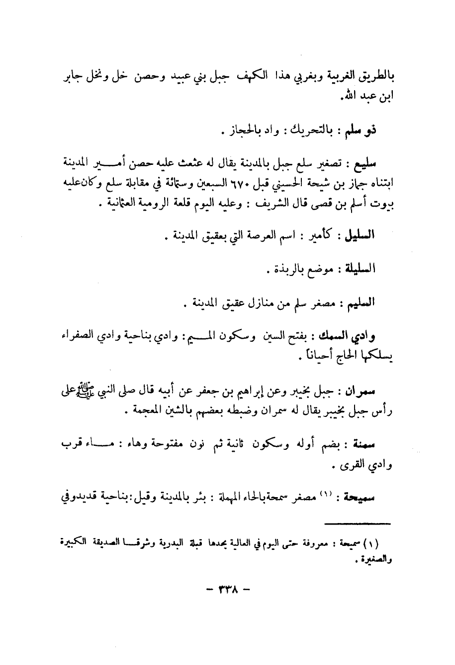 338 ... بالطريق الغربية وبغربي هذا الكهف جبل بني عبيد وحصن خل ونخل جابر ابن عبد الله.