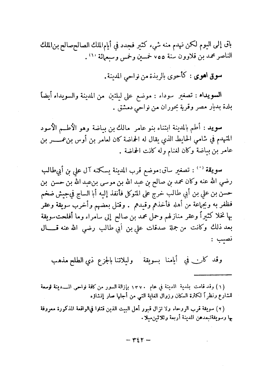 (2) سويقة قرب الروحاء ولا تزال قبور أهل البيت الذين قتلوا في الواقعة المذكورة معروفة بها وسويقة تبعد عن المدينة أربعة وثلاثين ميلا.