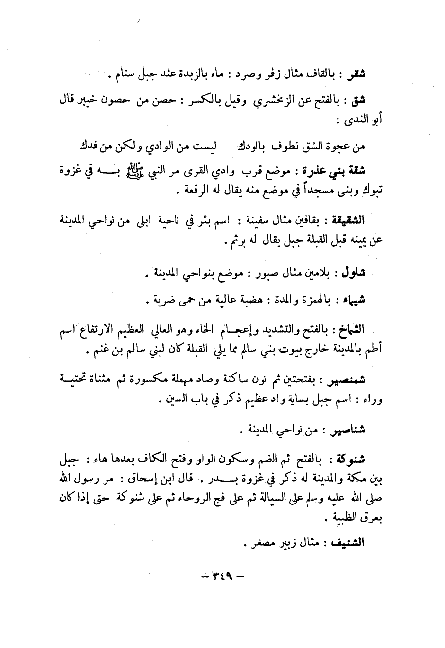 ضق: بالفتح عن الزمخشري وقيل بالكسر: حصن من حصون خيبر قال أبو الندى: من عجوة الشق نطوف بالودك ليست من الوادي ولكن من فدك شقة بني عذرة: موضع قرب وادي القرى مر النبي صلى الله عليه وسلم به في غزوة تبوك وبنى مسجداً في موضع منه يقال له الرقعة.