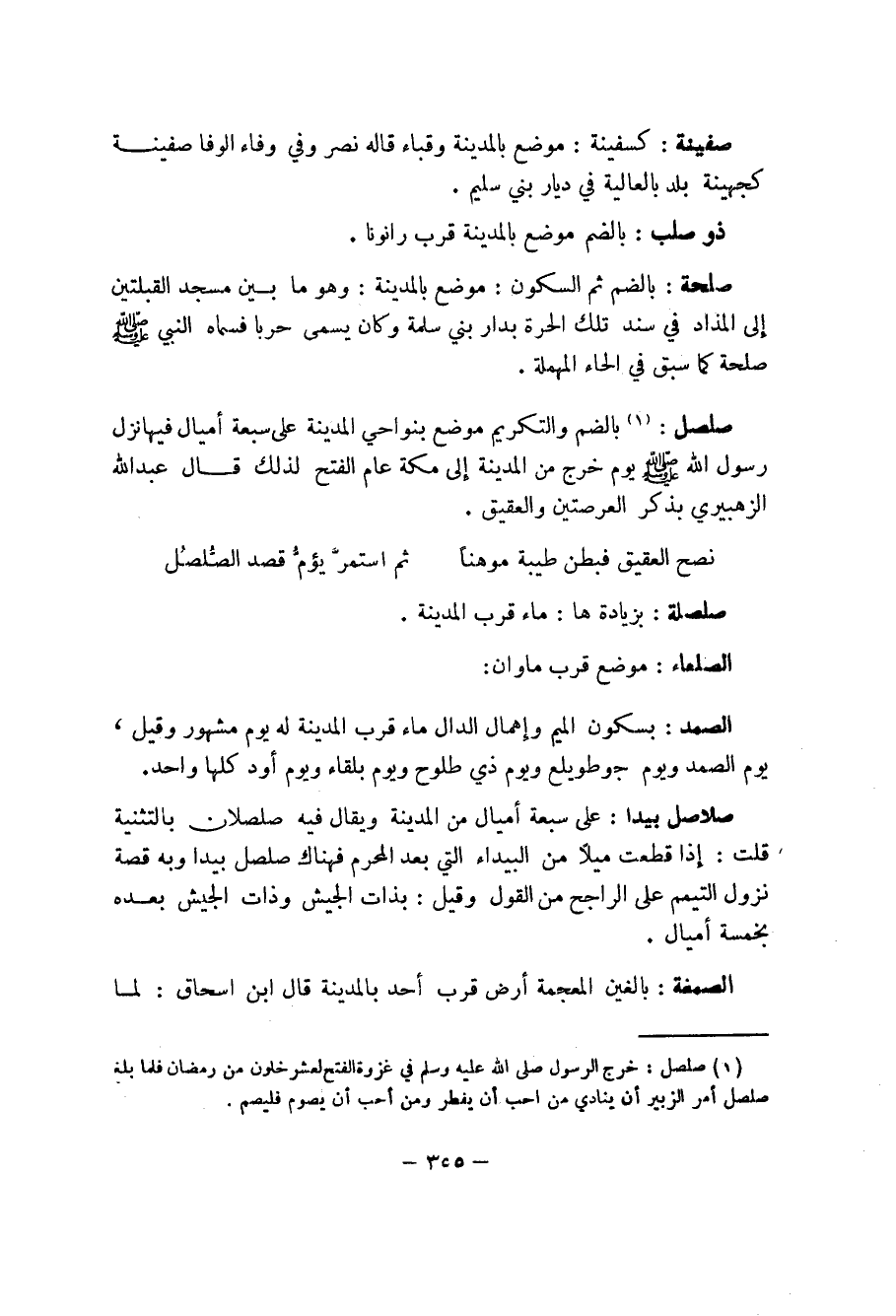(1) صلصل: خرج الرسول صلى الله عليه وسلم في غزوة الفتح لعشر خلون من رمضان فلما بلغه صلصل أمر الزبير أن ينادي من احب أن يفطر ومن احب أن يصوم فليصم.