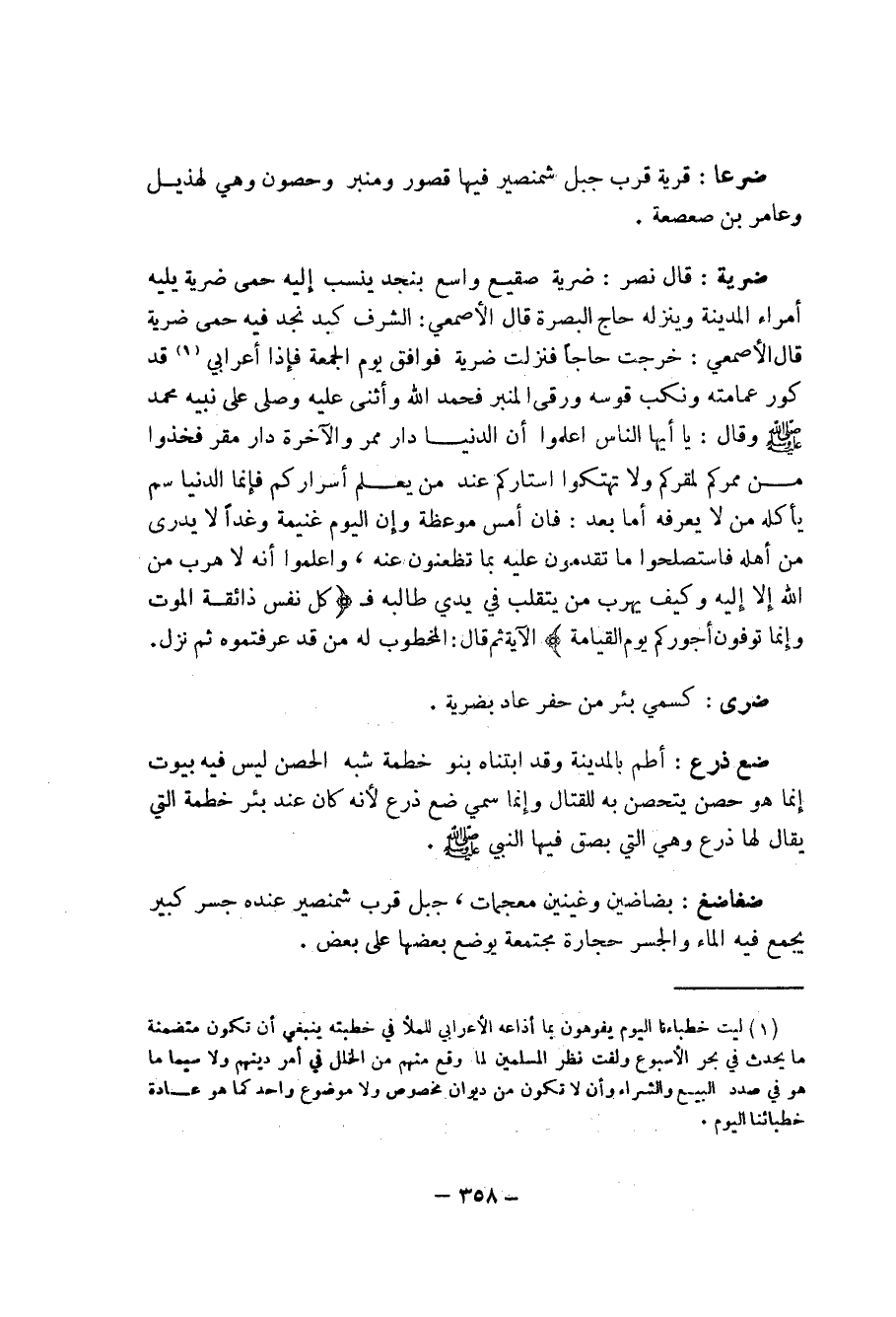 (1) ليت خطباءنا اليوم يفوهون بما اذاعه الأعرابي للملأ في خطبته ينبغي أن تكون متضمنة ما يحدث في بحر الأبوع ولفت نظر المسلمين لما وقع منهم من الخلل في أمر دينهم ولا سيما ما هو في صدد البيع والشراء وأن لا تكون من ديوان مخصوص ولا موضوع واحد كما هو عادة خطبائنا اليوم.