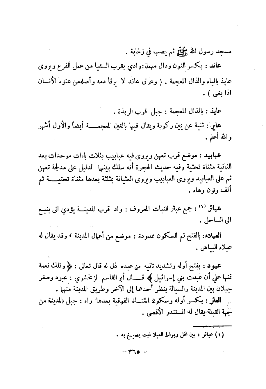 عباثر (1): جمع عبثر للنبات المعروف: واد قرب المدينة يؤدي الى ينبع الى الساحل.