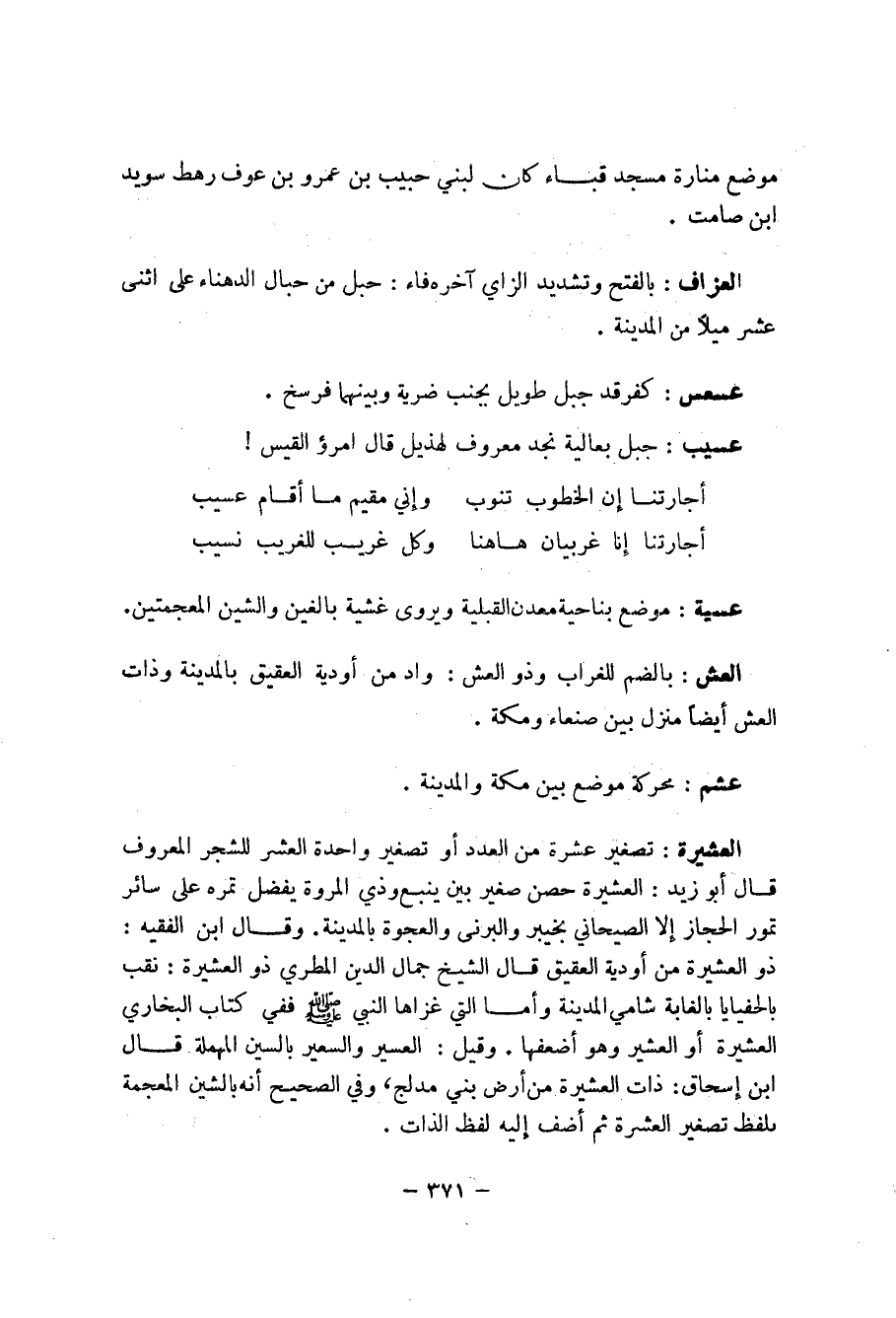 العزاف: بالفتح وتشديد الزاي آخره فاء: حبل من حبال الدهناء على اثنى عشر ميلاً من المدينة.