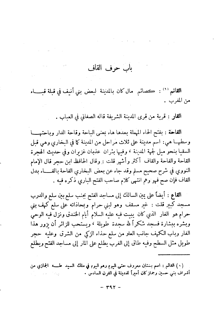 (1) القائم: اسم بستان معروف حتى اليوم وهو اليوم في ملك السيد طه الجمازي من أشراف بني حسين وجماز كان أميرا للمدينة في القرن السادس.