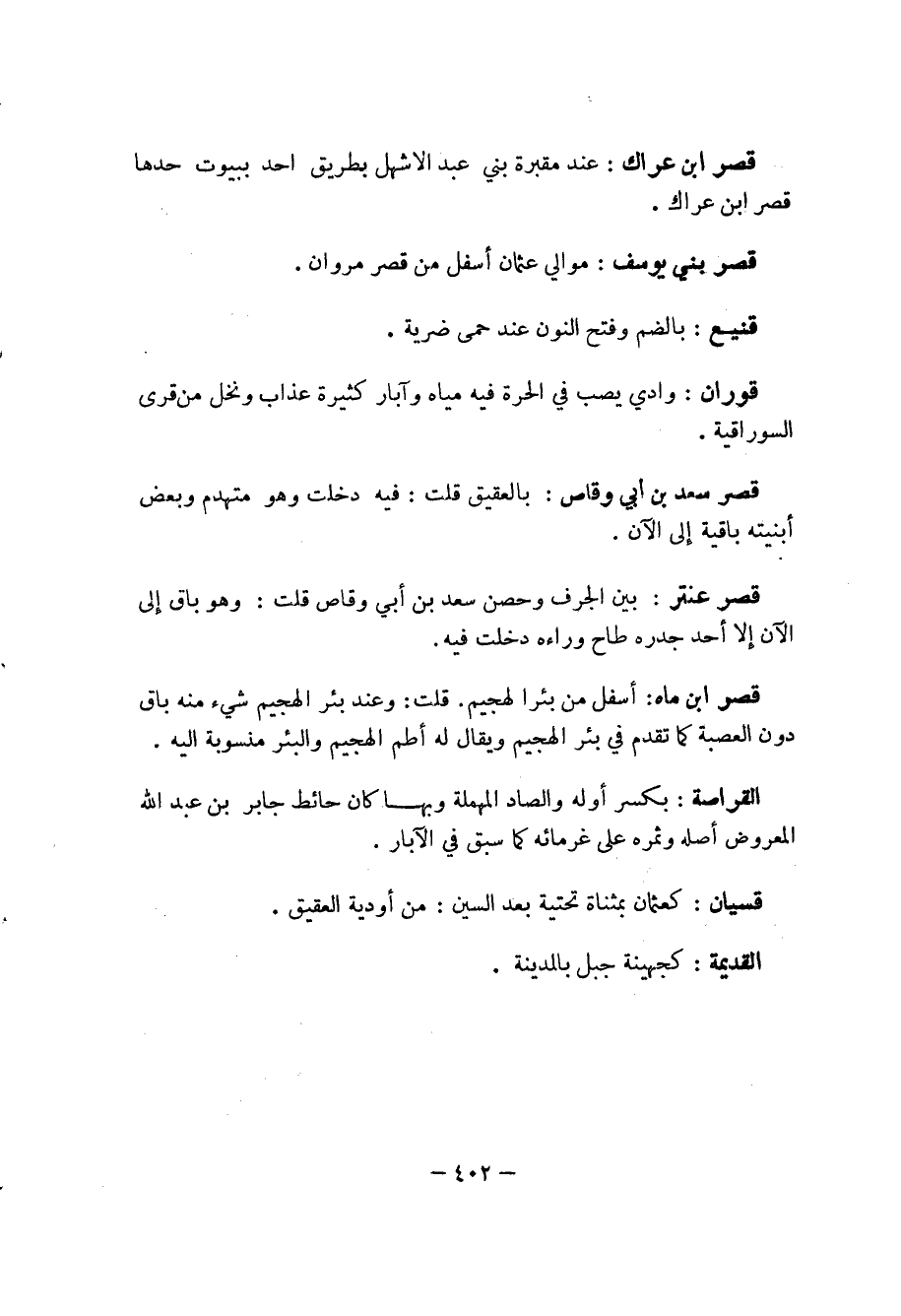 قصر ابن عراك: عند مقبرة بني عبد الاشهل بطريق احد بيوت حدها قصر ابن عراك.