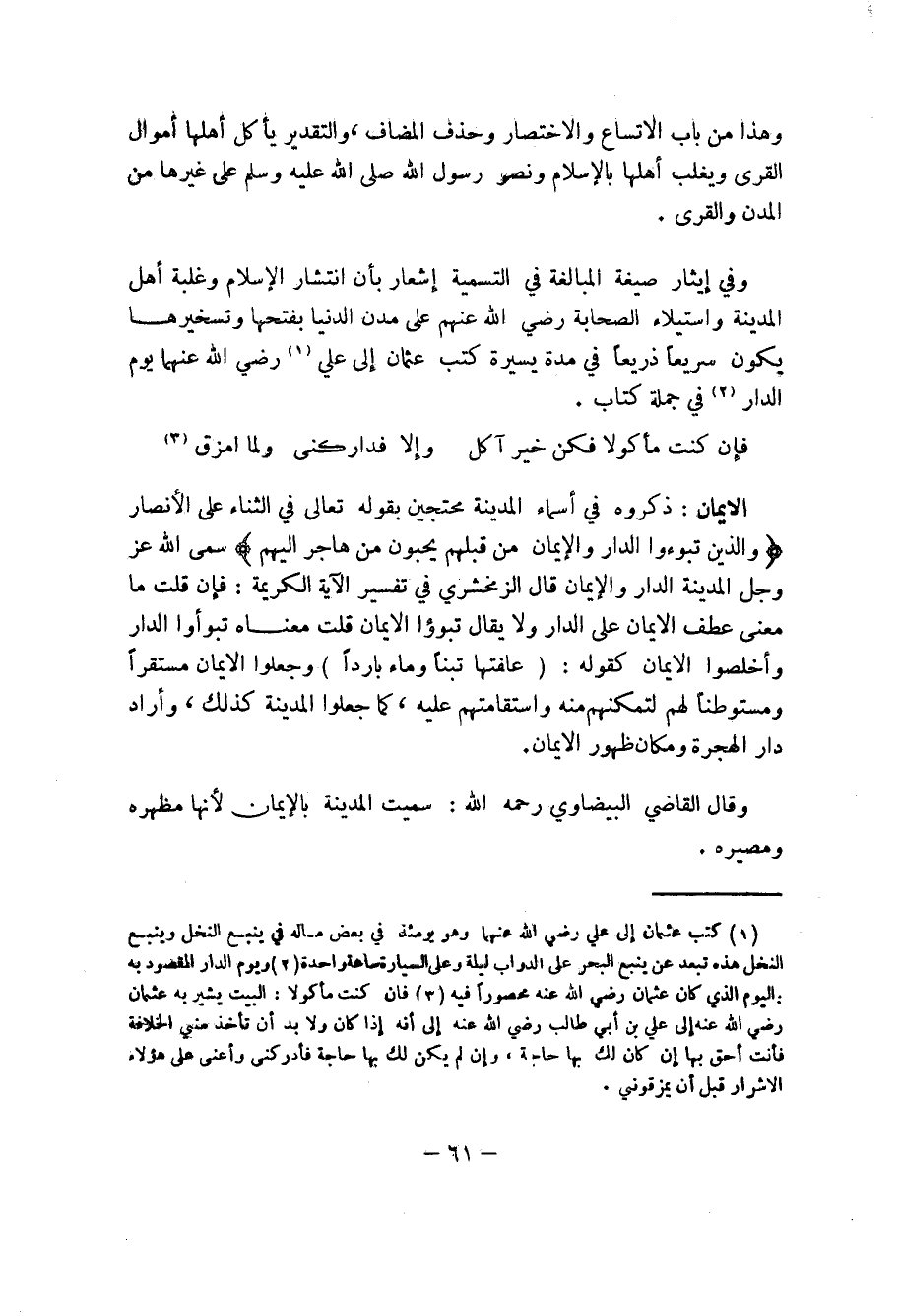 وقال القاضي البيضاوي رحمه الله: سميت المدينة بالايمان لأنها مظهره ومصيره.