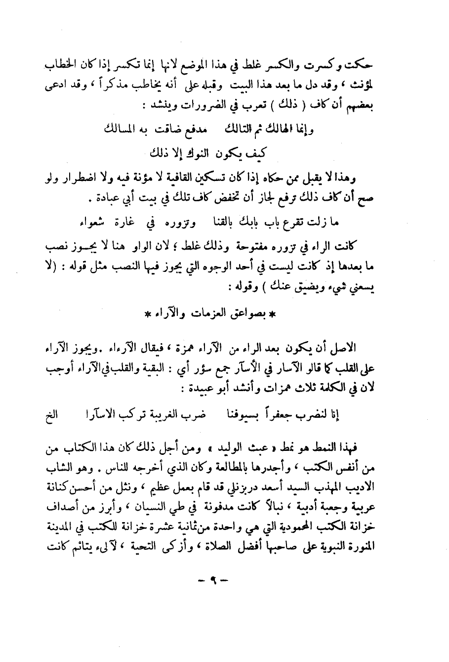 وهو الشاب الاديب المهذب السيد أسعد ديربزنلي قد قام بعمل عظيم، ونثل من أحسن كنانة عربية وجعبة أدبية، نبالاً كانت مدفونة في طي النسيان، وأبرز من اصداف خزانة الكتب المحمدية التي هي واحدة من ثمانية عشرة خزانة للكتب في المدينة المنورة النبوية على صاحبها أفضل الصلاة، وأزكى التحية، لآلىء يتائن كانت