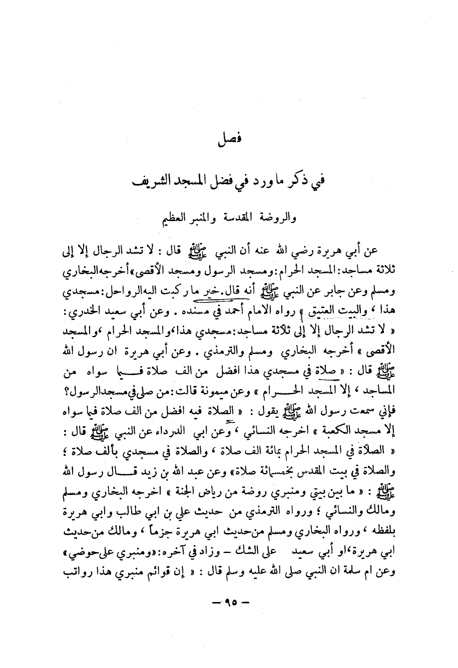 فصل في ذكر ما ورد في فضل المسجد الشريف والروضة المقدسة والمنبر العظيم