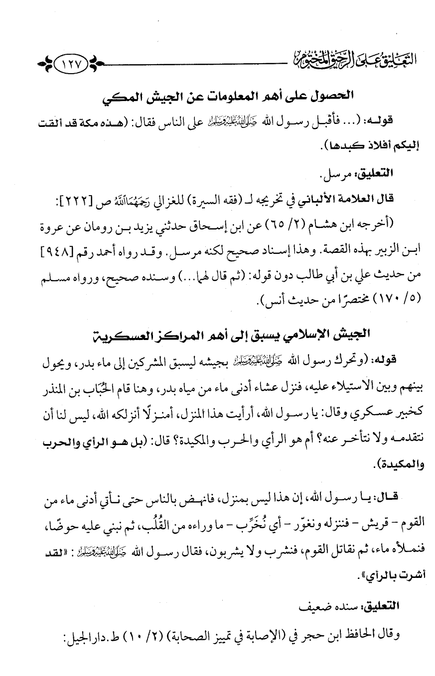 قال العلامة الألباني في تخريجه لفقه السيرة للغزالي - رحمهما الله - ص (222):