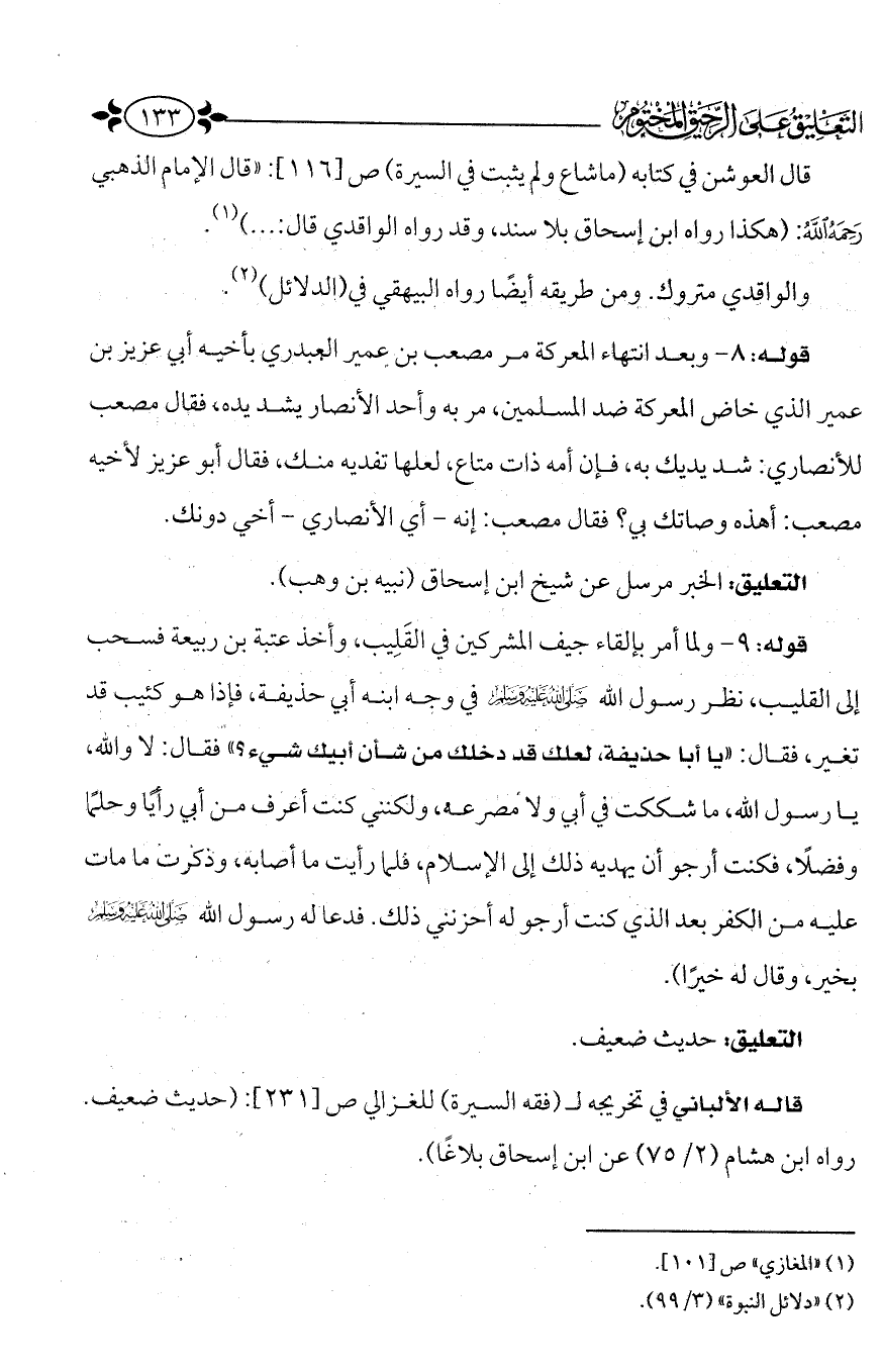 (قال الإمام الذهبي - رحمه الله -: (هكذا رواه ابن إسحاق بلا سند، وقد رواه الواقدي قال: ...) (¬1).