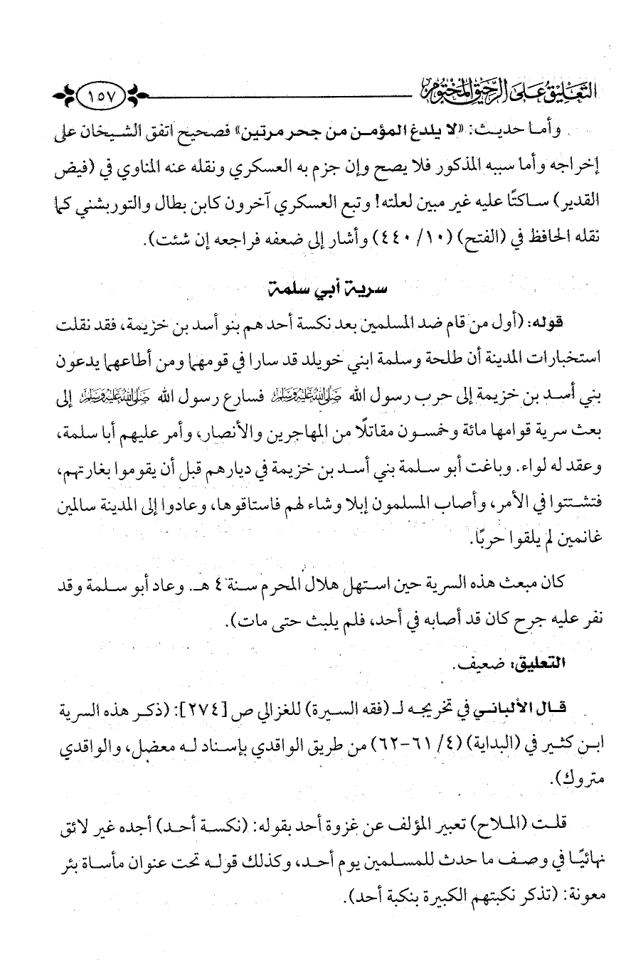 قال الألباني في تخريجه لفقه السيرة للغزالي ص (274): (ذكر هذه السرية ابن كثير في البداية (4/ 61 - 62) من طريق الواقدي بإسناد له معضل، والواقدي متروك).