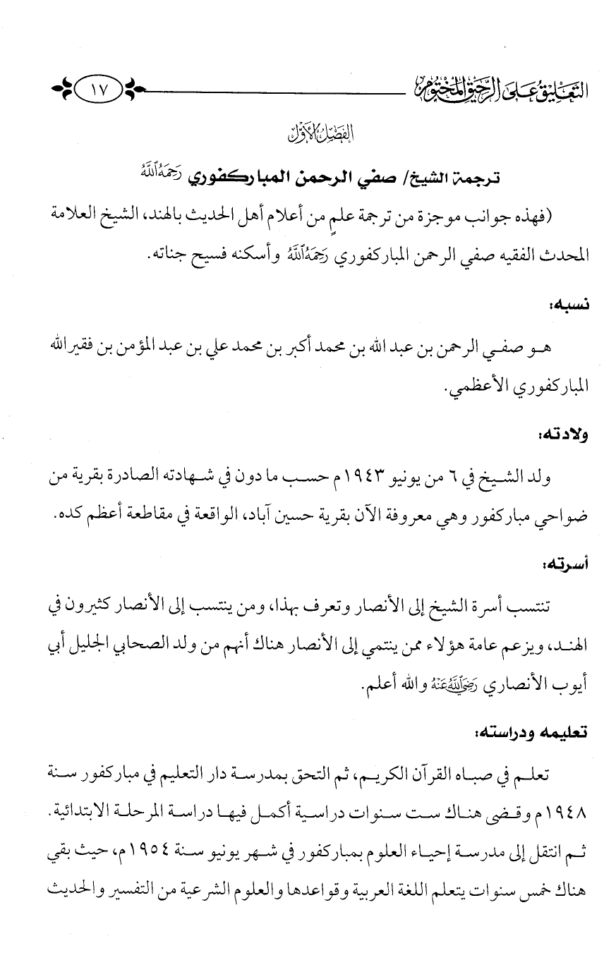 (فهذه جوانب موجزة من ترجمة علمٍ من أعلام أهل الحديث بالهند، الشيخ العلامة المحدث الفقيه صفي الرحمن المباركفوري - رحمه الله - وأسكنه فسيح جناته.