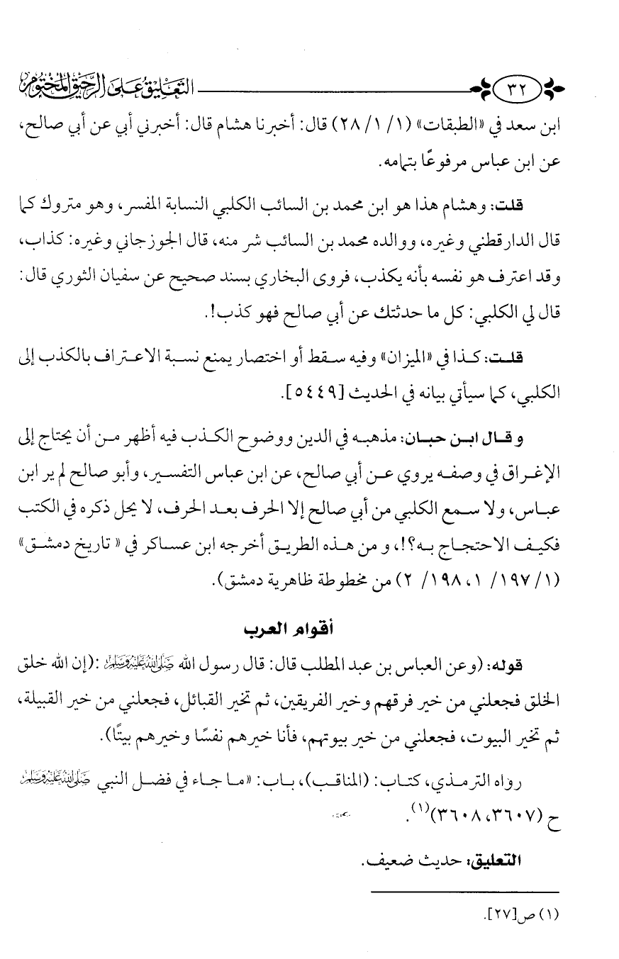 قلت: وهشام هذا هو ابن محمد بن السائب الكلبي النسابة المفسر، وهو متروك كما