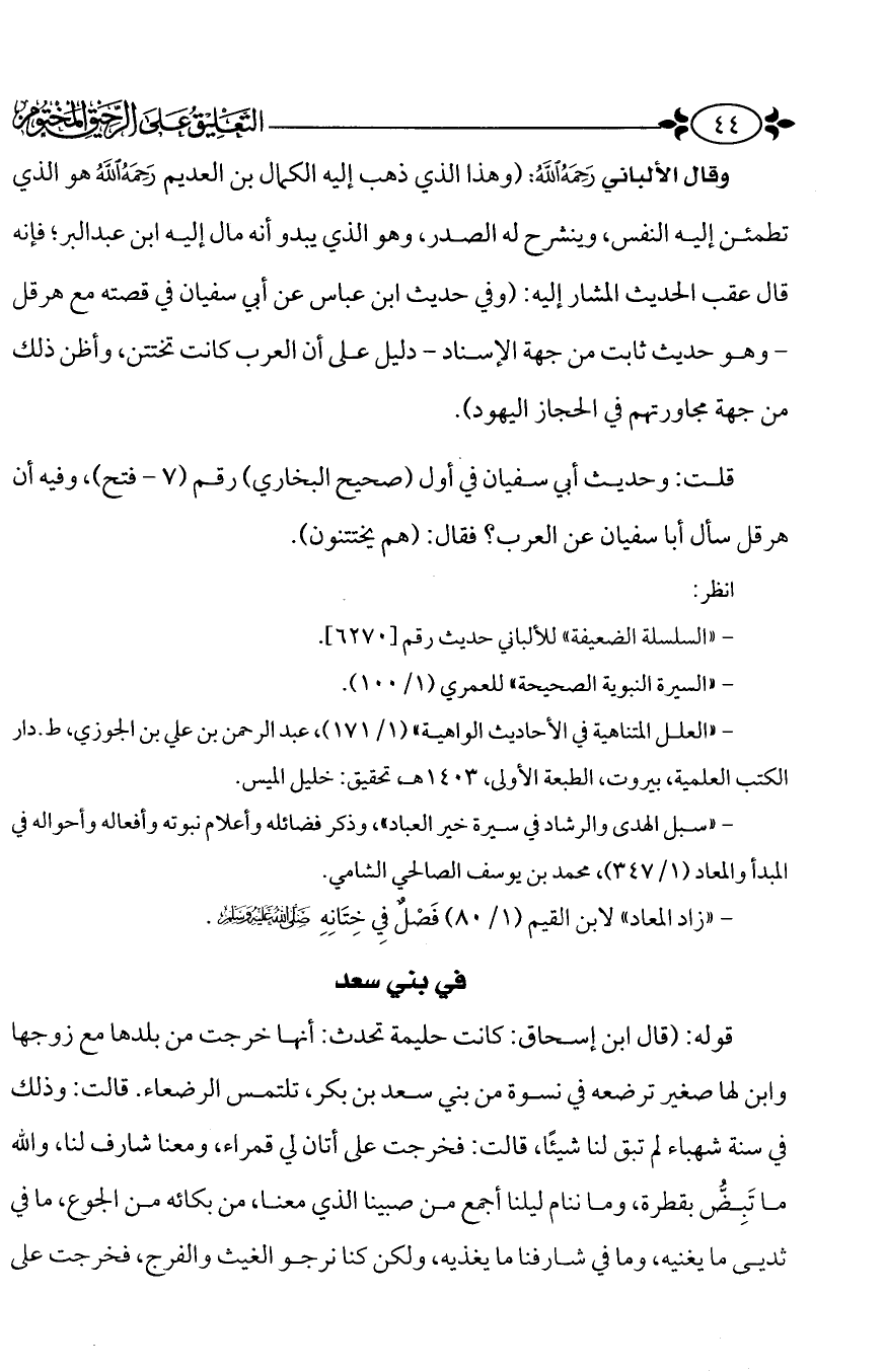 - سبل الهدى والرشاد في سيرة خير العباد، وذكر فضائله وأعلام نبوته وأفعاله وأحواله في المبدأ والمعاد (1/ 347)، محمد بن يوسف الصالحي الشامي.