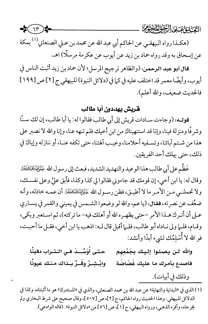 قال أبو عبد الرحمن: (والظاهر ترجيح المرسل؛ لأن حماد بن زيد أثبت الناس في أيوب، وأيضا معمر قد اختلف عليه في كما في دلائل النبوة للبيهقي ج2 ص199 فالحديث ضعيف، والله أعلم).