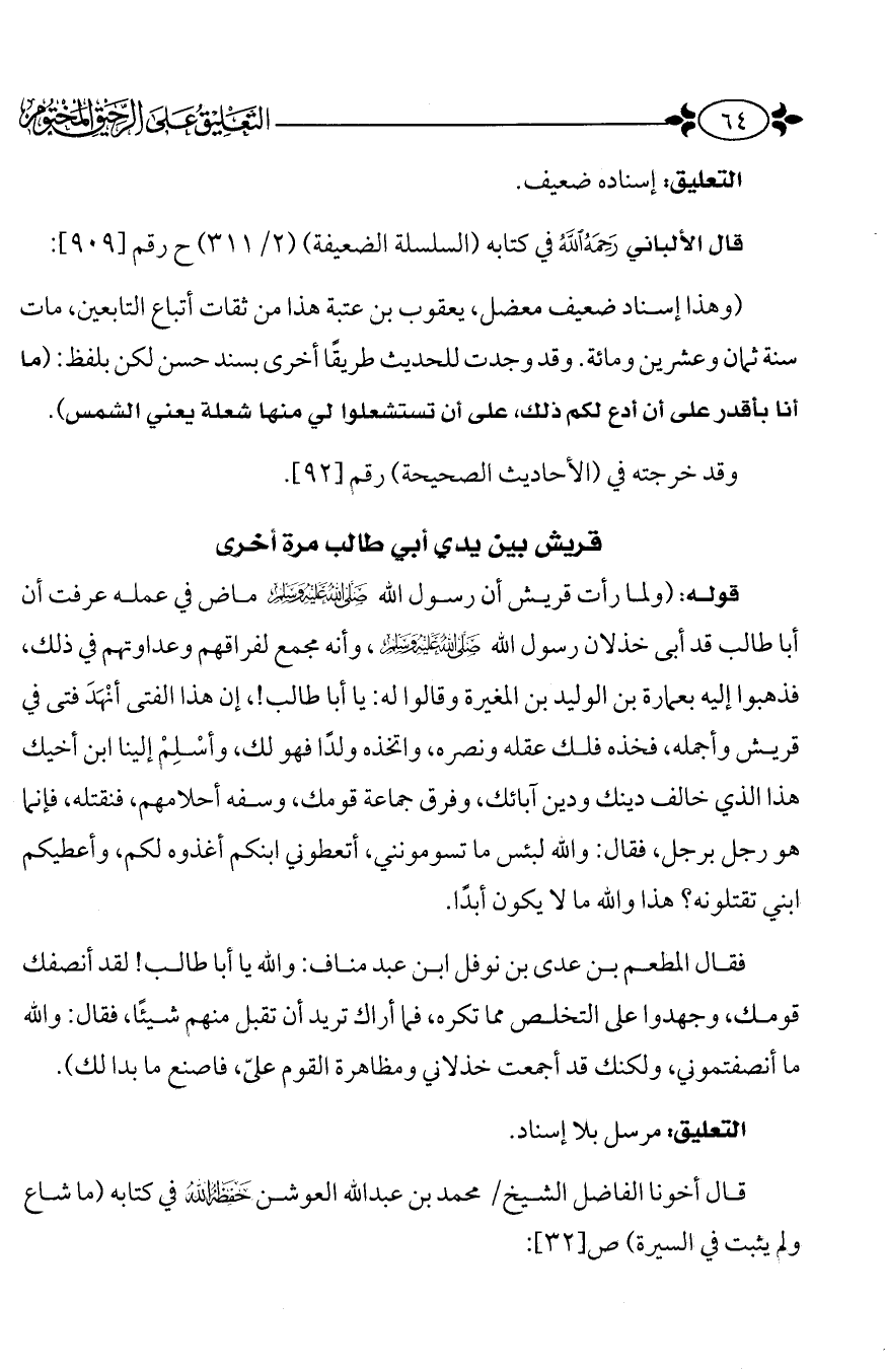 قال أخونا الفاضل الشيخ: محمد بن عبد الله العوشن - حفظه الله - في كتابه (ما شاع ولم يثبت في السيرة) ص (32):